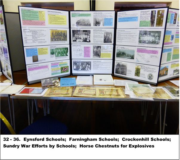 The Exhibition was mounted in each of the villages on consecutive Saturdays, and was attended by at least 700 people. The display sheets summarised the research undertaken for the Exhibition by Dr Susan Pittman, and a publication as a follow-up was considered. However, such a project would have been time-consuming, and the cost of reproducing the various photographs prohibitive. It was therefore decided to put the display sheets onto the website, so that they could be consulted at leisure. What is lacking is, of course, the various artefacts, most from the FELHS collection, which were arranged alongside the display boards. However, photographs of the table-top displays have been added to give a general idea of these.